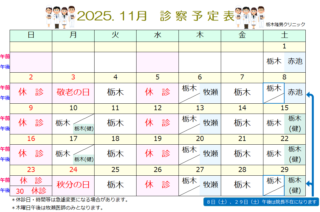 2025’ 11 診療予定表