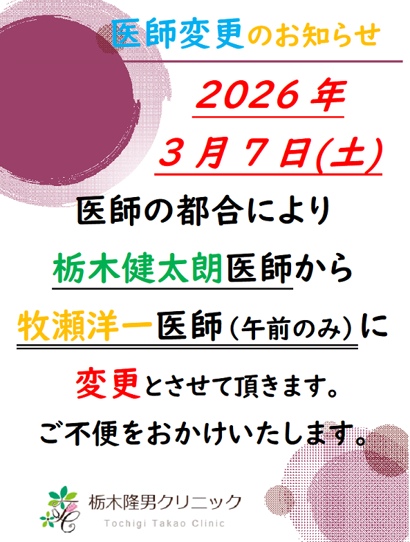 医師変更のお知らせ3/7(土)