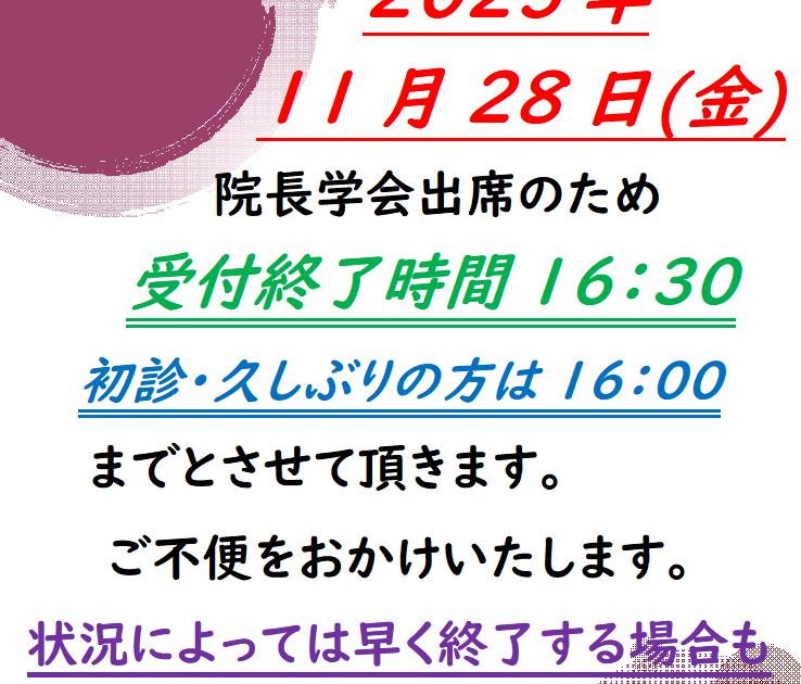 午後休診のお知らせ10/21(火)