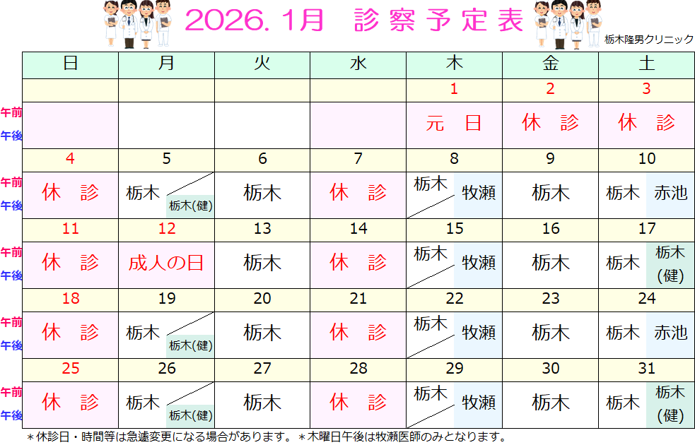 2026’ 1 診療予定表
