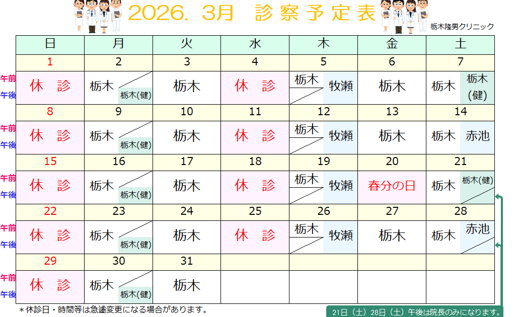 2026’ 3 診療予定表