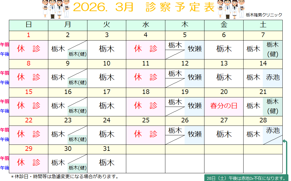 2026’ 3 診療予定表